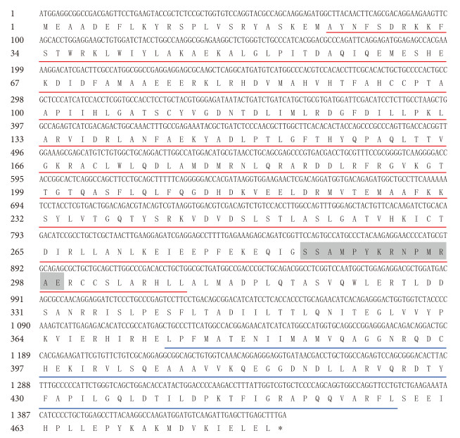 adsl was 1 446 bp and encoded a polypeptide of 481 amino acids (aa). The corresponding protein had a relative molecular weight of 54.6 kD and an isoelectric point of 6.19, including Pfam Lyase_1 (Ala