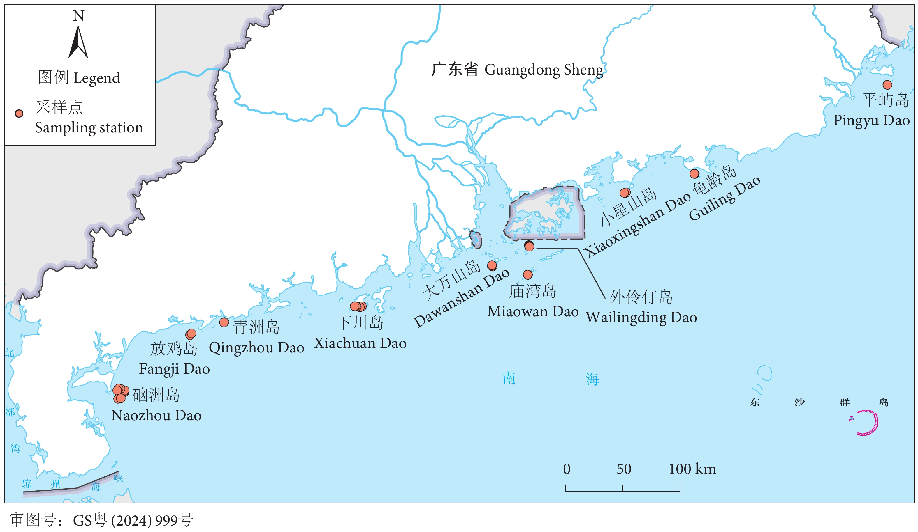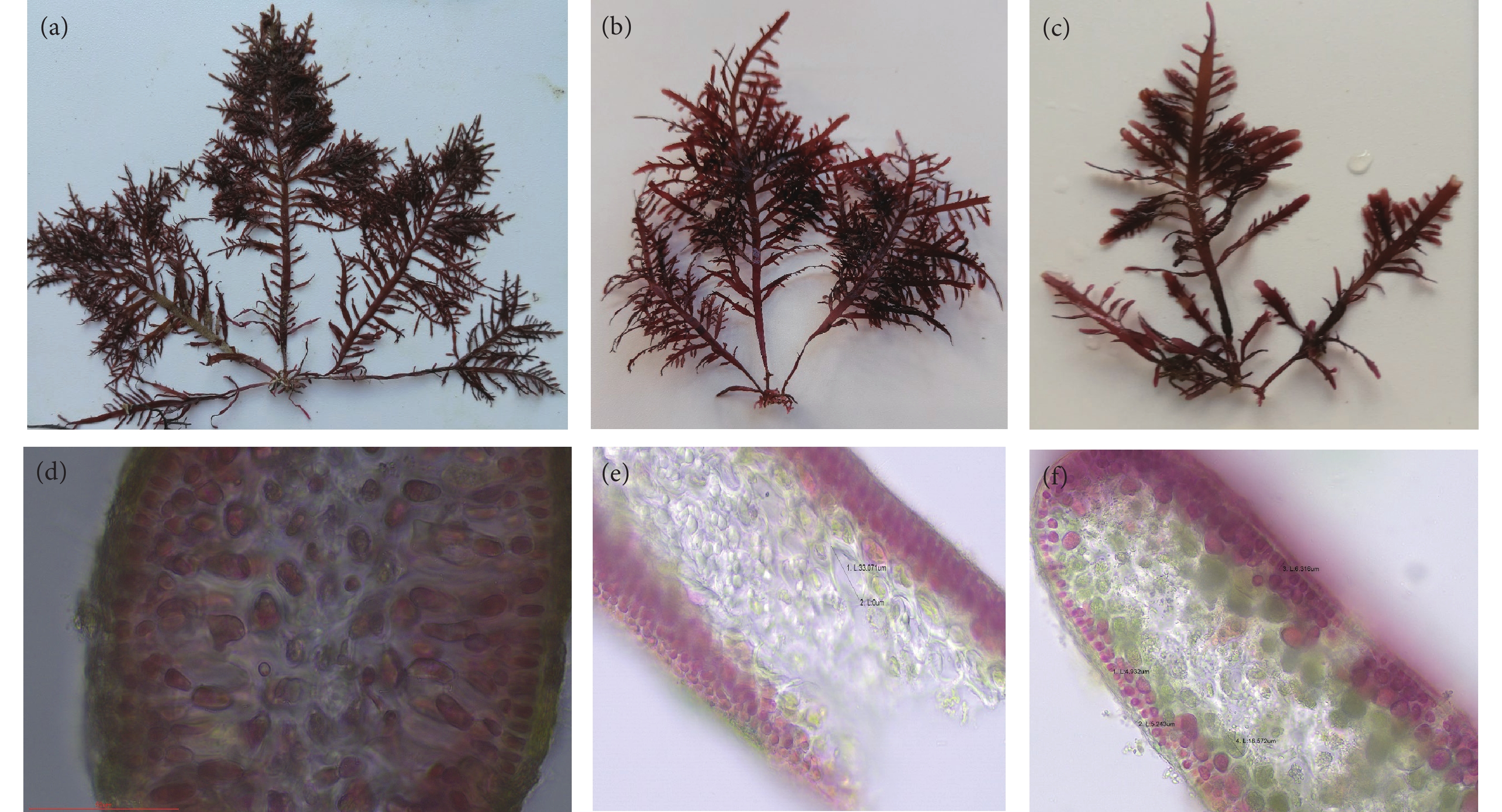 In order to find out the economic species and biomass of dominant species of marine macroalgae on intertidal areas of ten islands in Guangdong Province, and to provide references for the conservation and development of economic marine macroalgae and construction of marine ranching in Guangdong Province, we conducted a survey on 46 stations of these islands by qualitative and quantitative methods from January 2021 to February 2023. The results show that a total of 55 species of economic marine macroalgae including 14 species of Chlorophyta, 30 species of Rhodophyta and 11 species of Phaeophyta were collected from these ten islands.