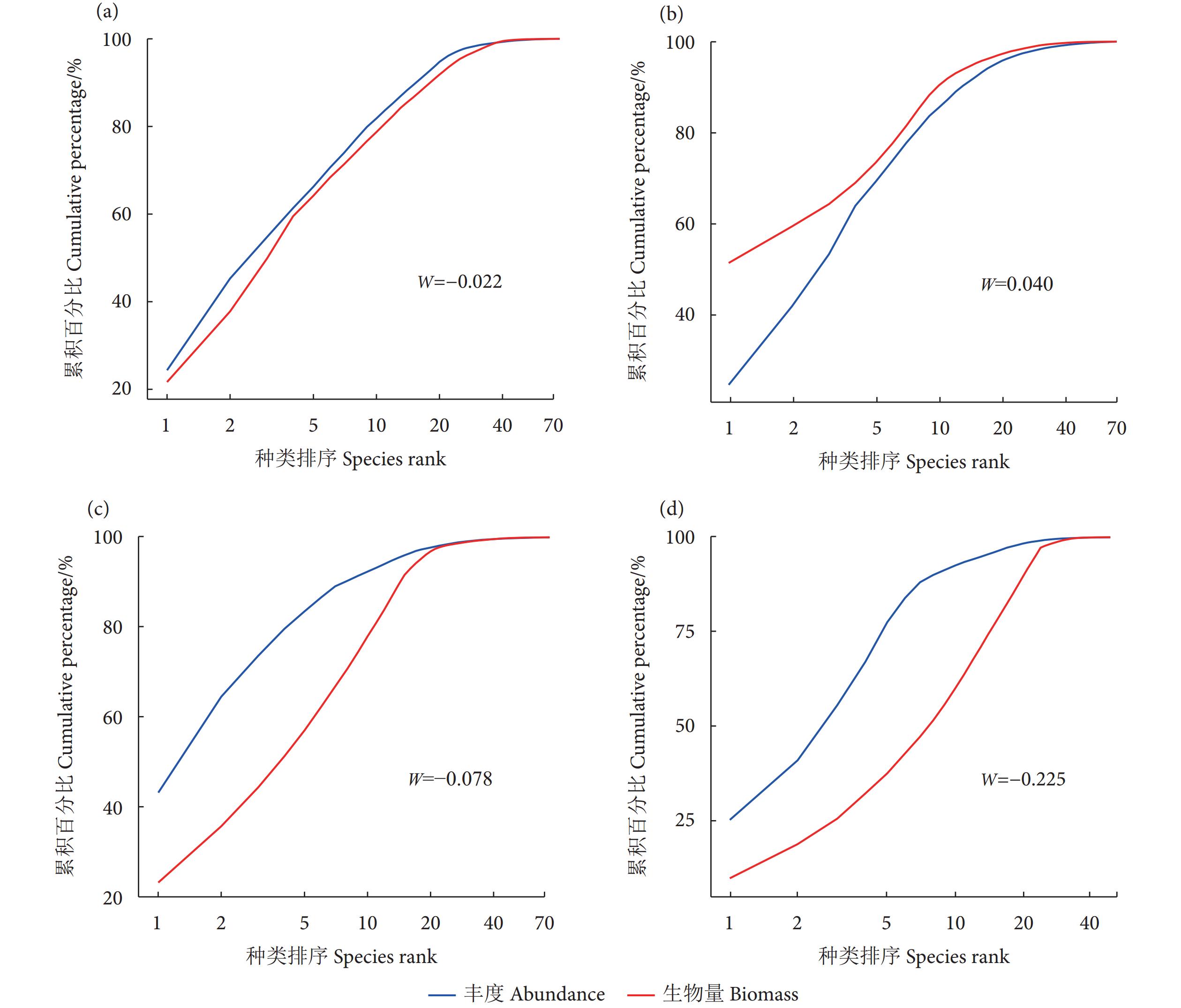 p<0.05). Dominant species results indicate a trend towards smaller-sized fish communities. The abundance-biomass comparison curves show that the
