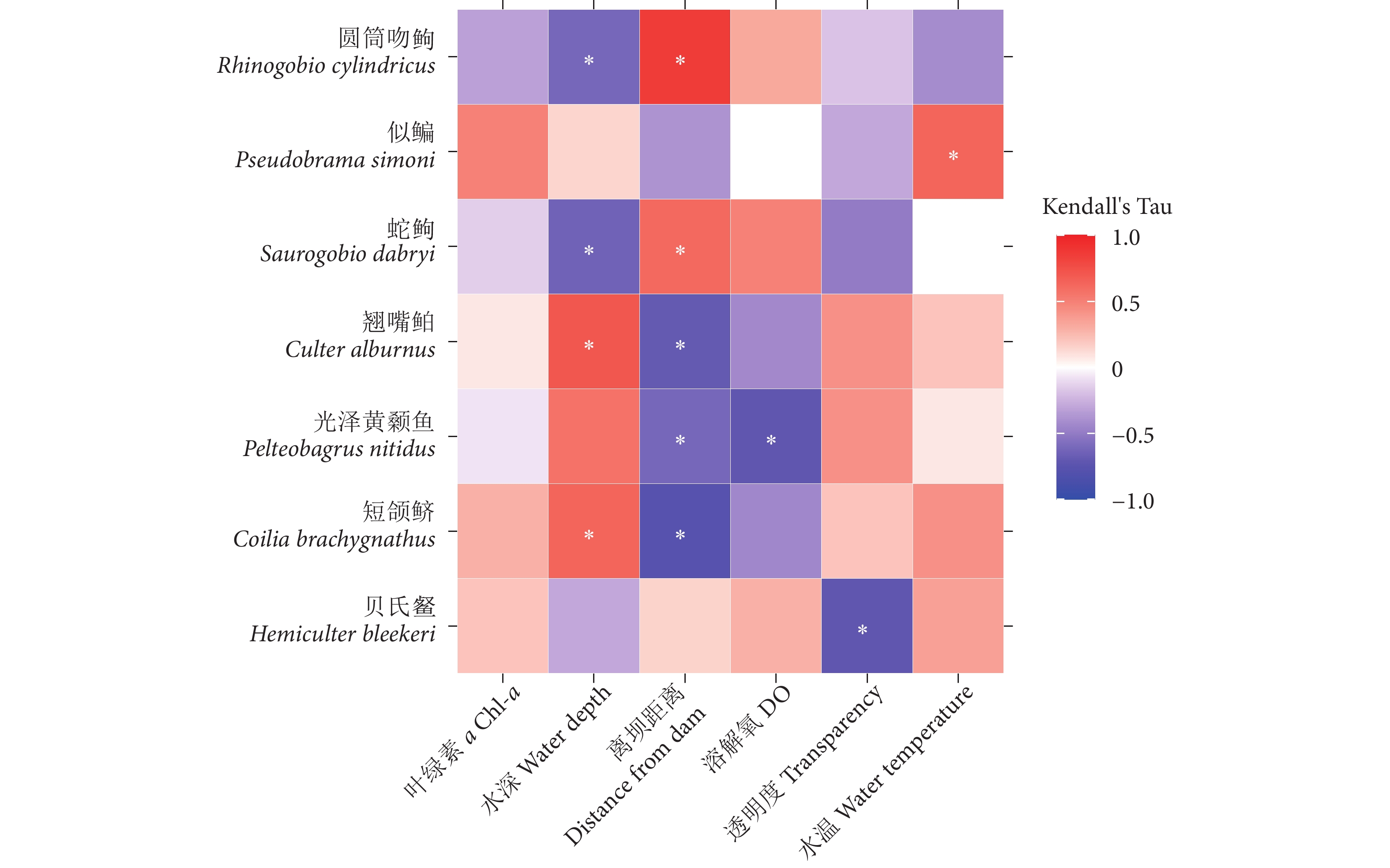 Rhinogobio cylindricus increased with distance from the Three Gorges Dam and shallower water depths, while