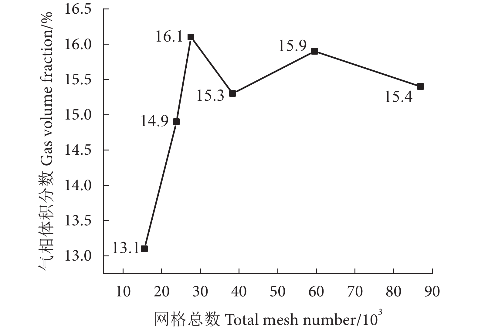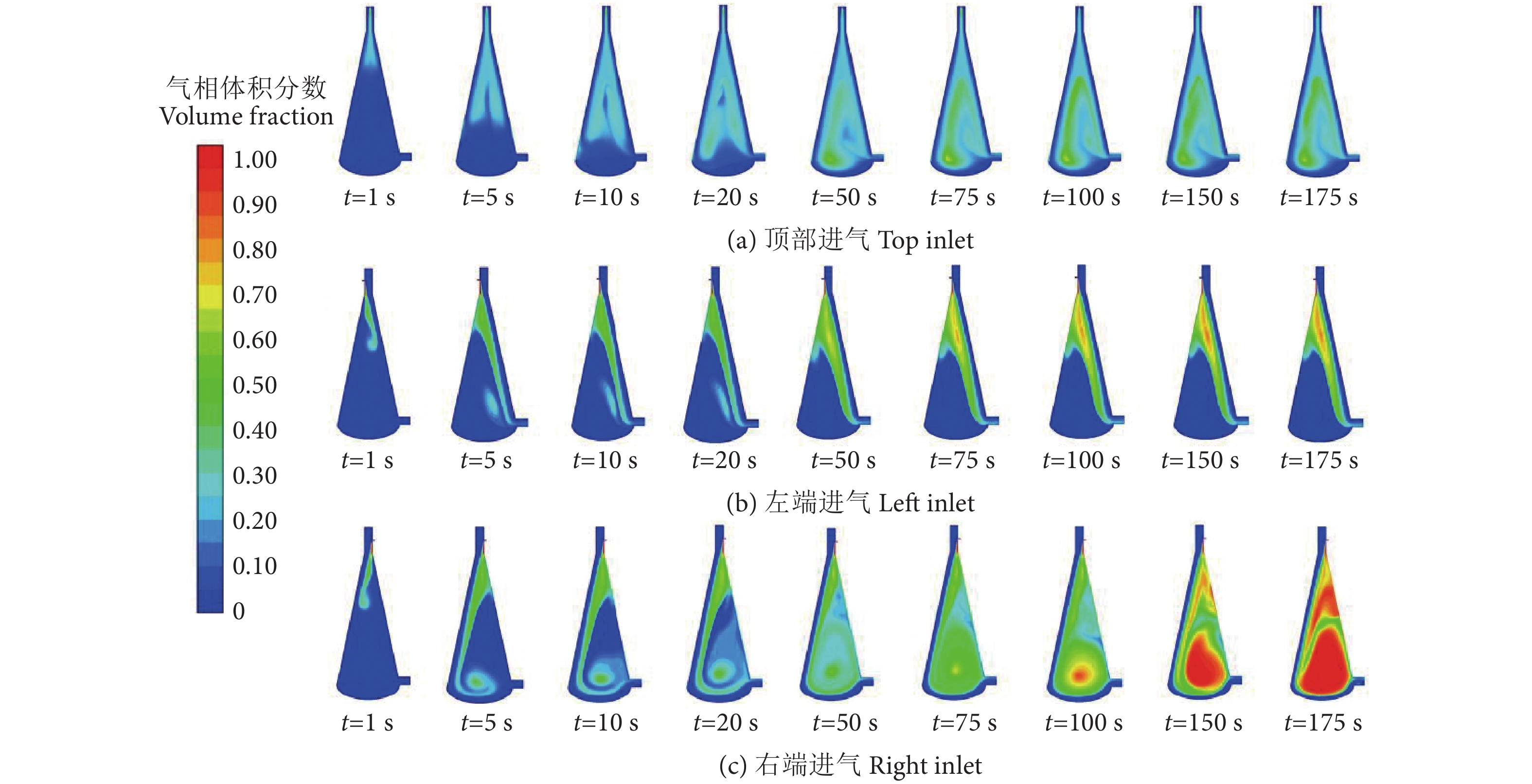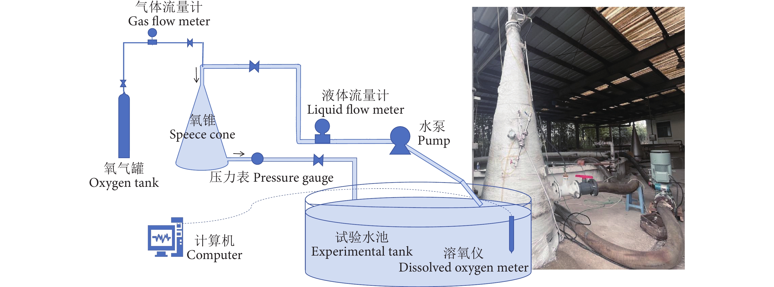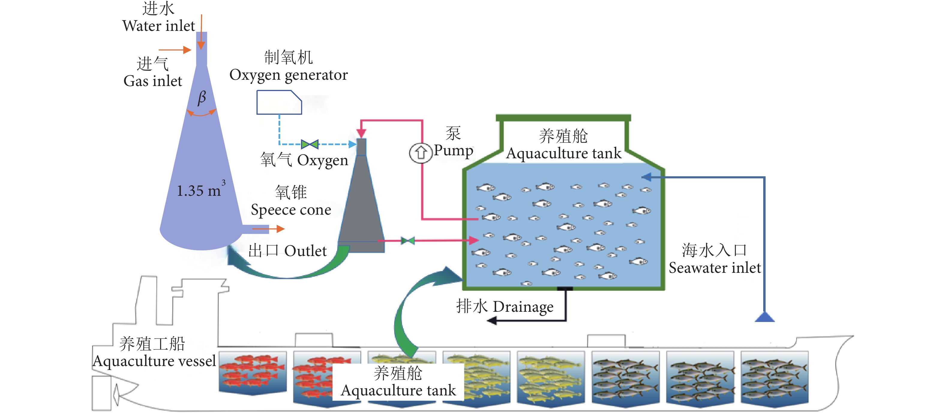 To understand the characteristics of gas-liquid two-phase flow in the speece cone and improve its oxygenation performance, taking the speece cone in an oxygenation system of large-scale aquaculture platform cabin as the subject, we carried out a two-dimensional transient numerical simulation of gas-liquid two-phase flow in the speece cone under different conditions (Gas inlet method, taper and aperture size) based on the Euler-Euler model, analyzed the gas volume fraction distribution, the internal flow field pressure and the velocity distribution, explored the flow law of gas-liquid two-phase in the speece cone, and determined the key structural parameters influencing the aeration and oxygen dissolving performance of the speece cone. According to the results, under a given air inlet flow, when the gas inlet was consistent with the water inlet from speece cone, the mixing degree of gas and water was high. The experimental verification shows that the speece cone with top inlet had the best dissolved oxygen performance compared with the left inlet method and right inlet method. When the speece cone had the same volume, changes in the taper of the speece cone led to gas-liquid two-phase changed: a smaller taper, a higher speece cone, and longer motion path and mixing time of oxygen in the speece cone, favoring full oxygen dissolution. By the same gas inlet method, the gas-liquid two-phase distribution was similar in the speece cone. The volume fraction of the speece cone outlet gas increased with decreasing air inlet aperture, and when the air inlet aperture was reduced to