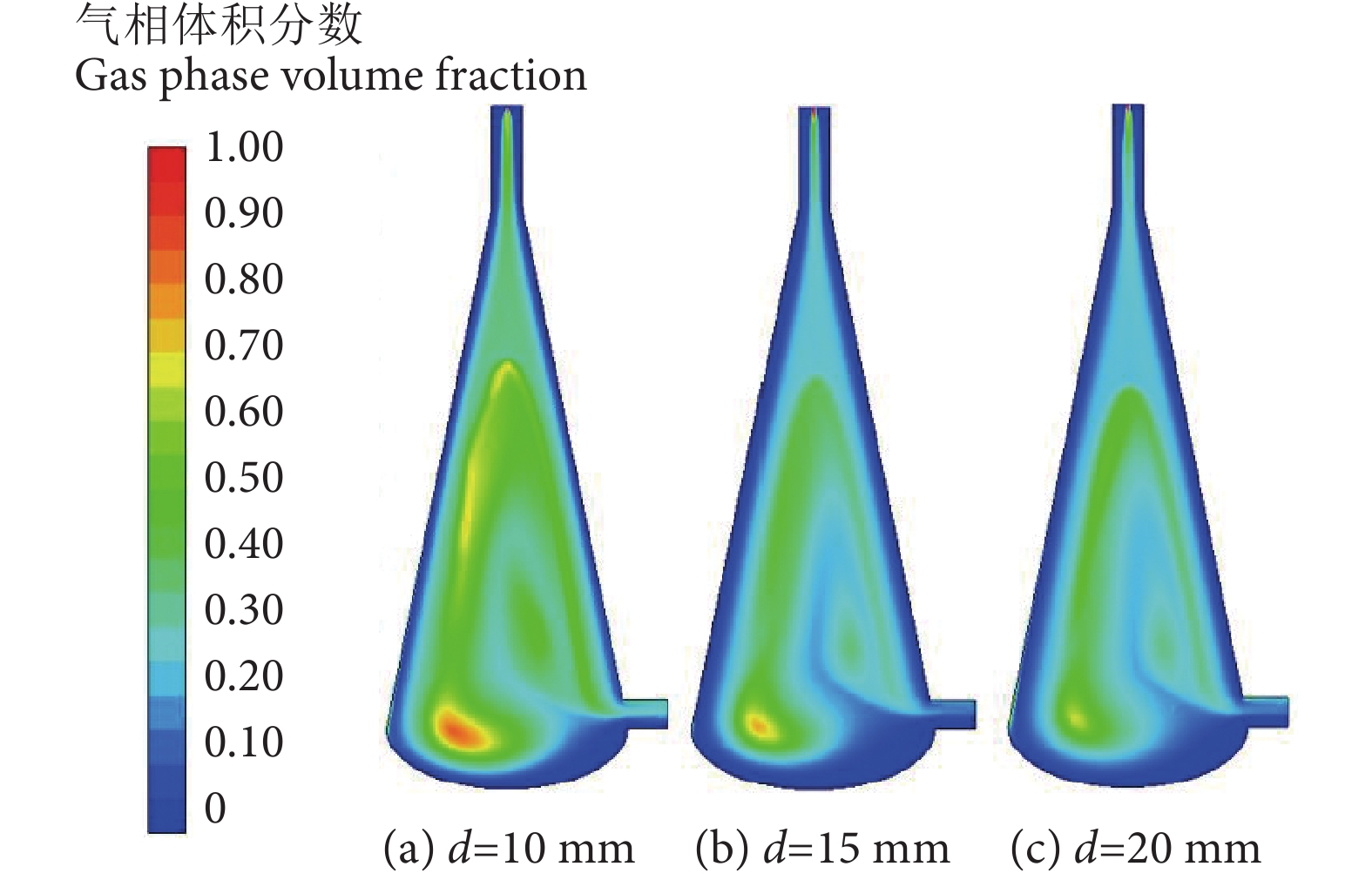 d =10 mm, the gas and liquid were best mixed in the speece cone.