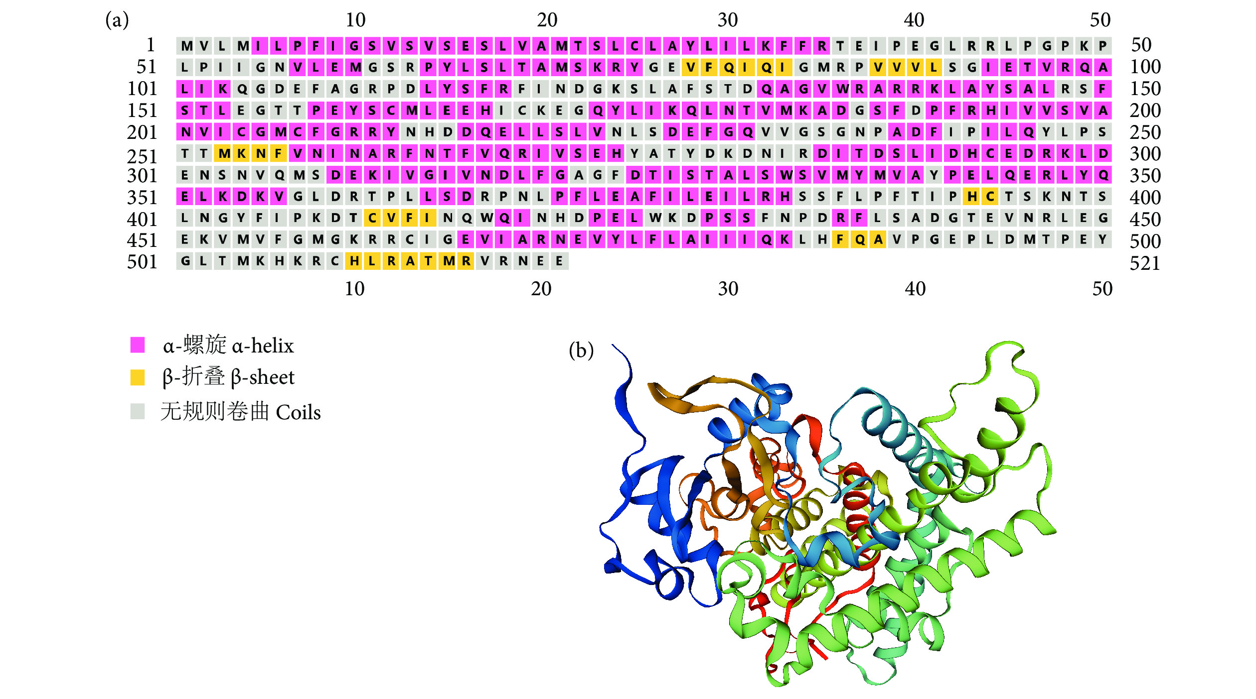 a cDNA was 2 540 bp with 1 566 open reading frame encoding 521 amino acids. The sequence homology of