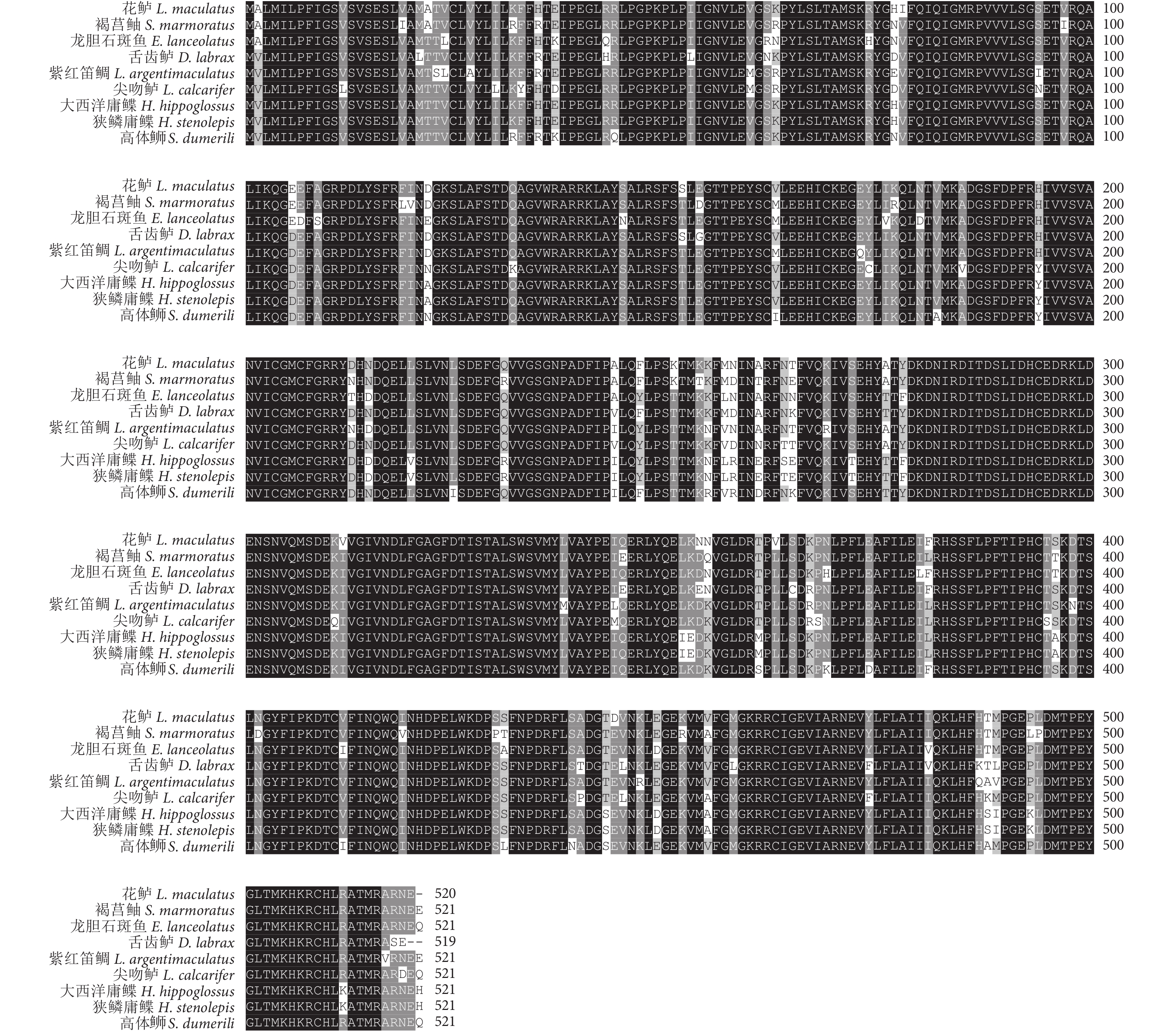 L. argentimaculatus CYP1A was the highest (92.69%) with that of