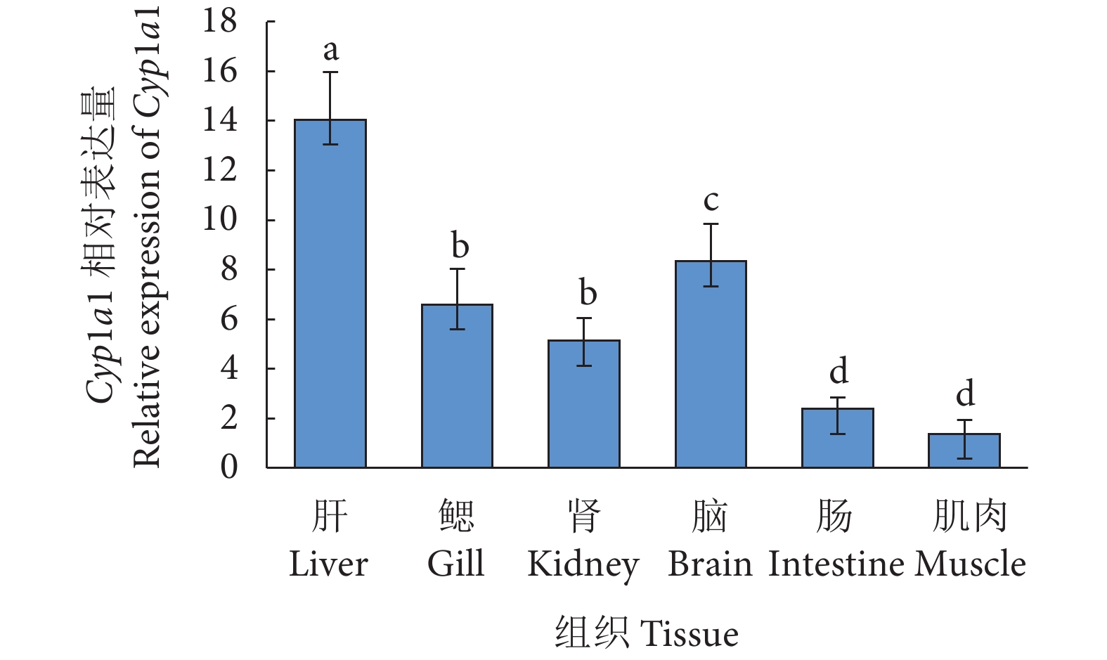 a transcripts were most abundant in liver, followed by brain and gill, but lowest in muscle. 10 μg·L