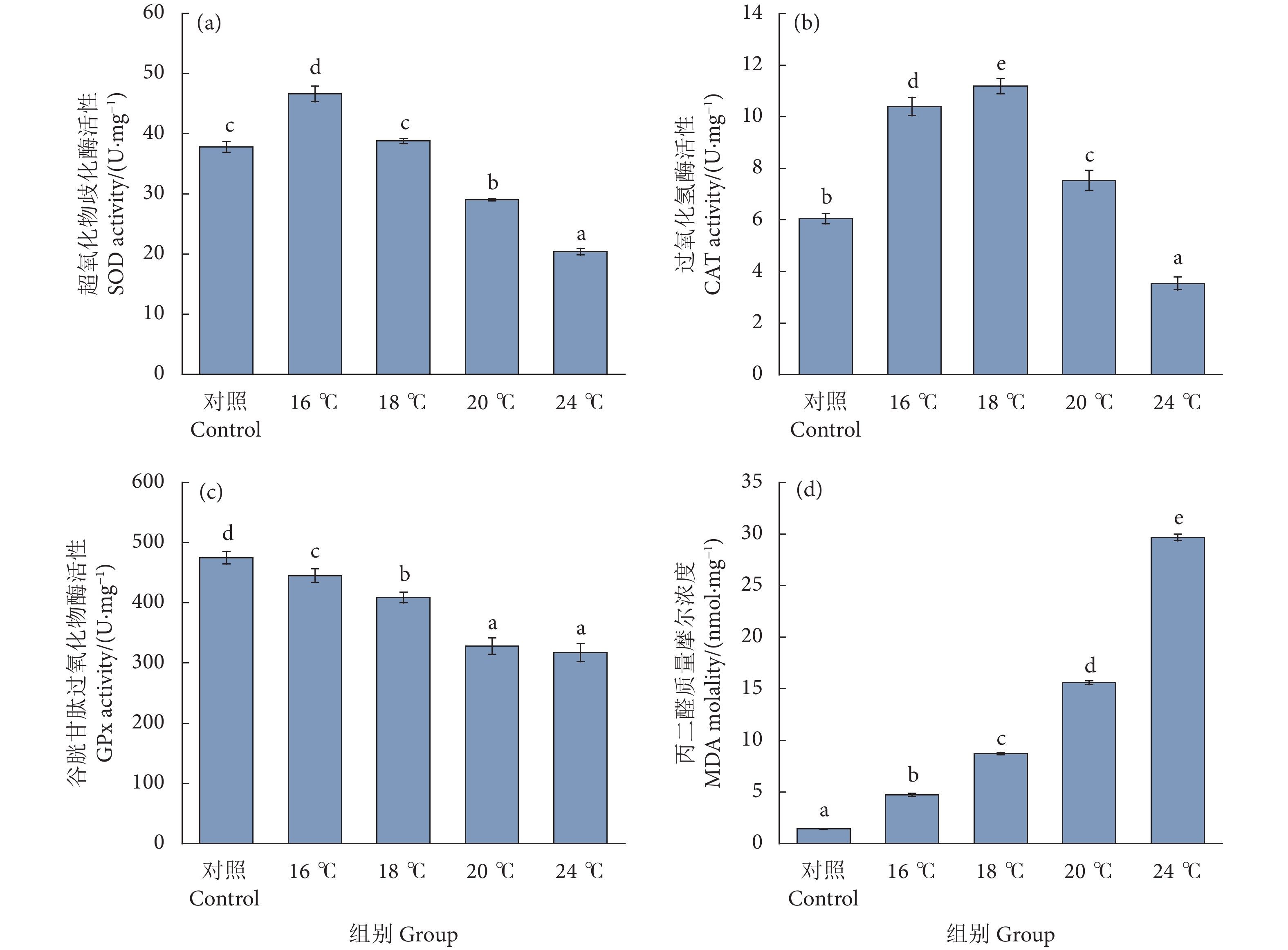 E. lanceolatus ♂ can provide a theoretical basis for its survival and circulation. We decreased the water temperature to 24, 20, 18 and 16 ℃ at the rate of 0.5−1.0 ℃·h
